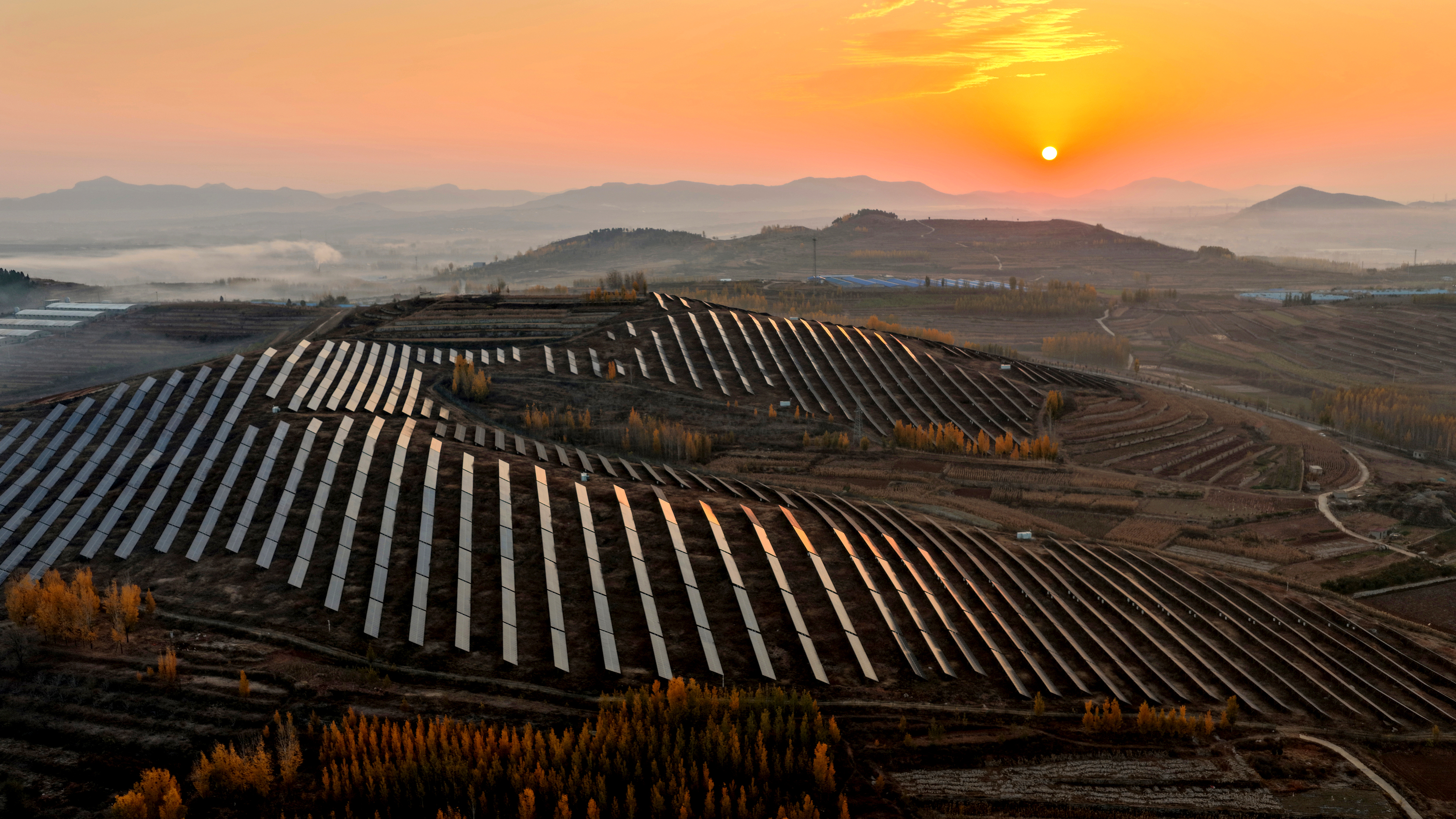 11月14日拍摄的临沂市蒙阴县常路镇东三庄光伏基地(无人机照片)。(公茂栋摄)